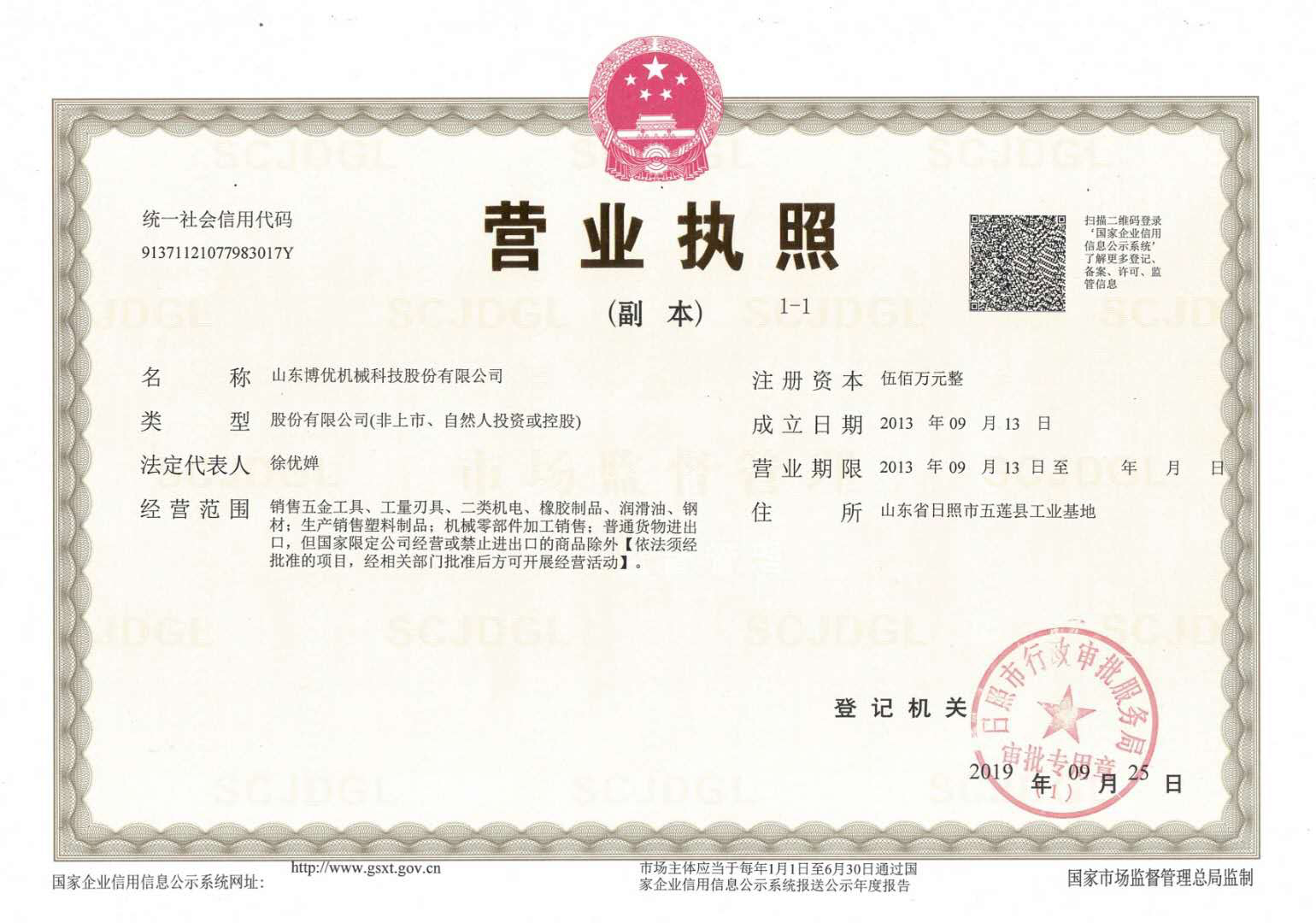 公司前身(日照博優(yōu)塑膠科技有限公司)于2013年注冊(cè)成立。
